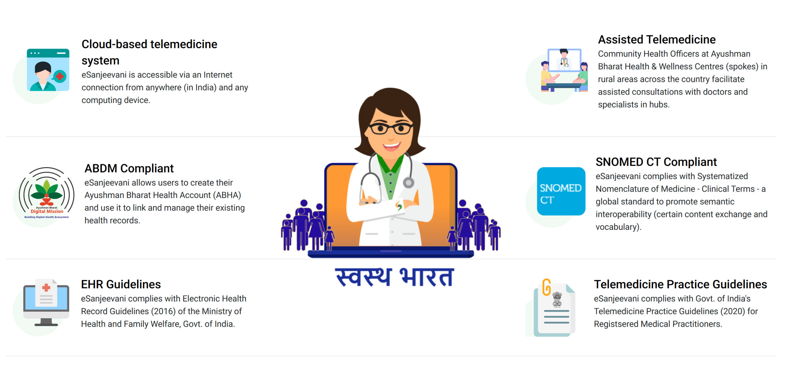 - Expanding to eSanjeevani 2.0 with AI features, multilingual interface, and capacity for 1 million consultations/day.
