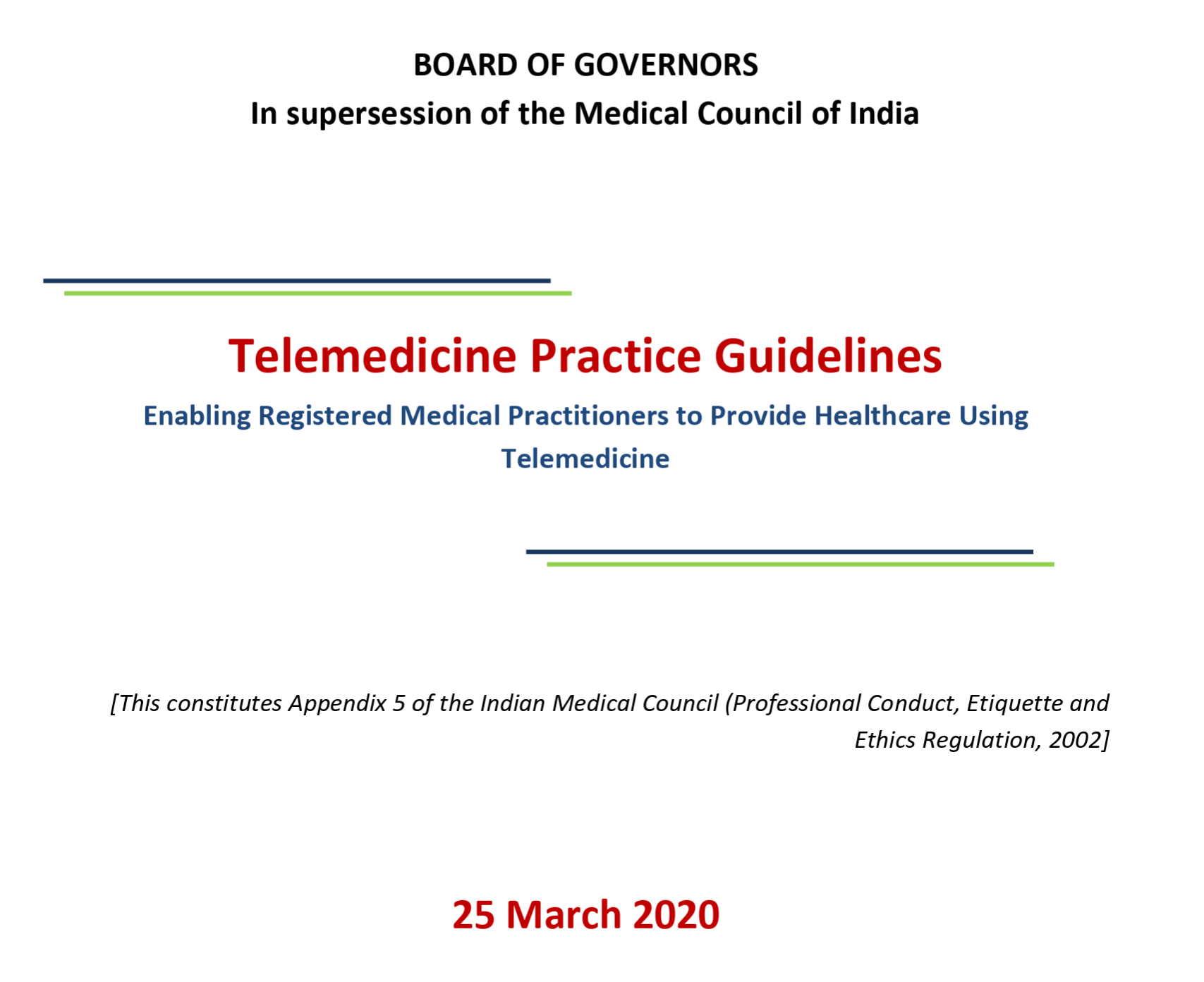 - In India, the 2026‑updated Telemedicine Practice Guidelines stress that the same professional standards apply whether care is given in‑person or remotely.